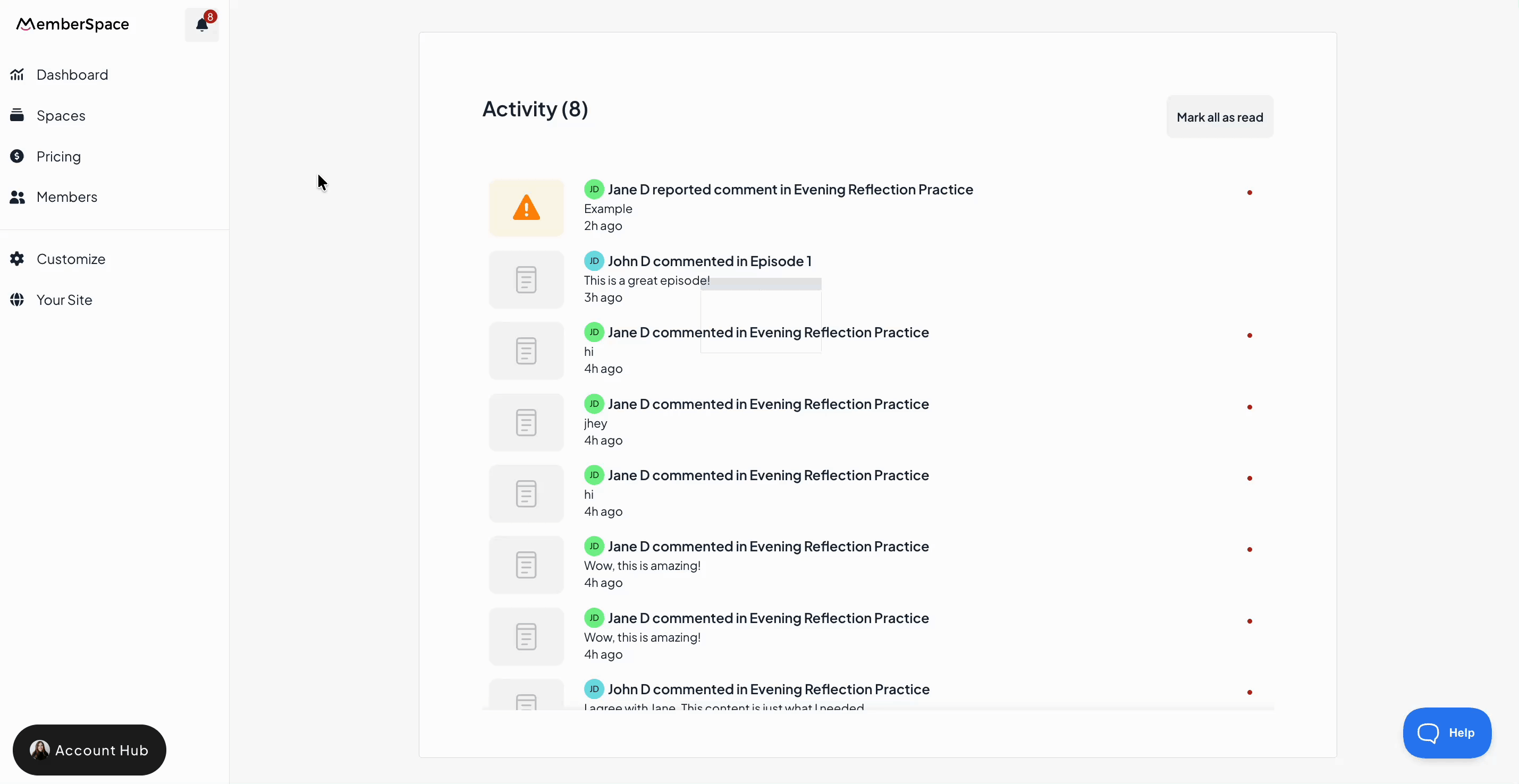Comments and reactions work alongside MemberSpace’s existing notification tools to help members and admins stay in the loop.